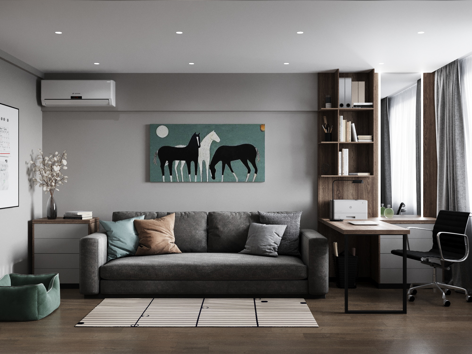 Color Palette – Light neutral tones dominate, with accents in textiles and décor adding warmth and coziness.