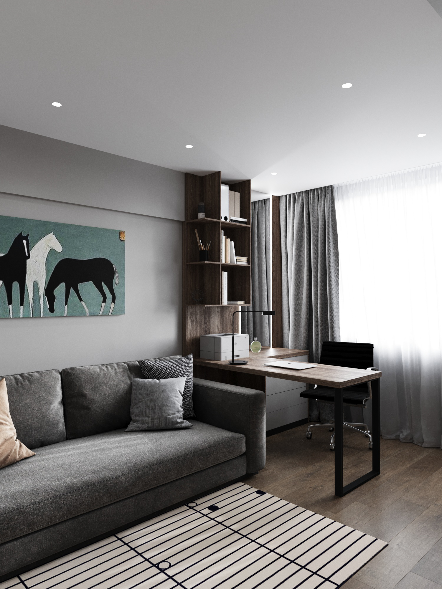 This modern minimalist apartment is the perfect choice for those who value comfort, style, and efficiency, even in a small space.