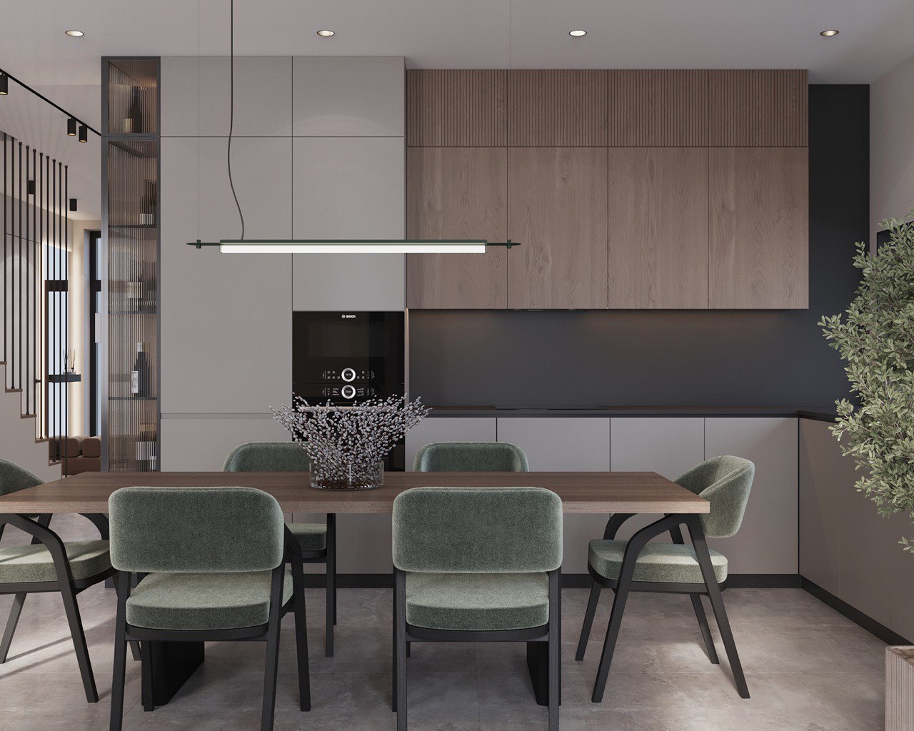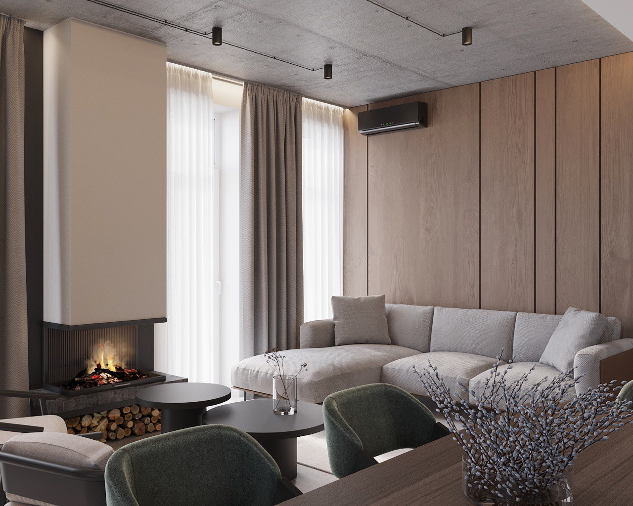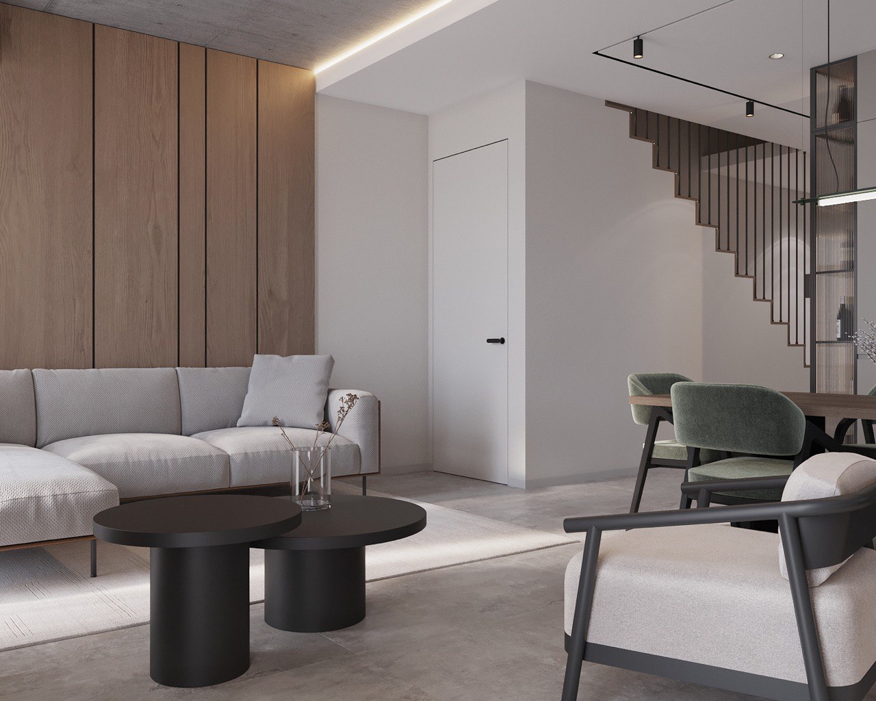 This 180 m² duplex apartment seamlessly blends eco, loft, and minimalist styles. Designed for those who appreciate natural materials, simplicity, and modern aesthetics with an industrial touch.