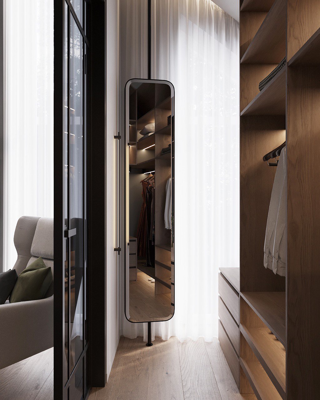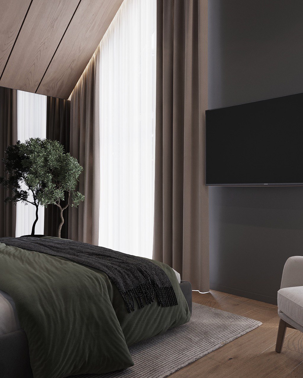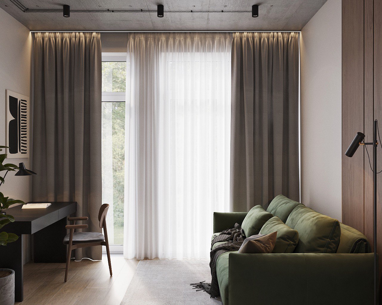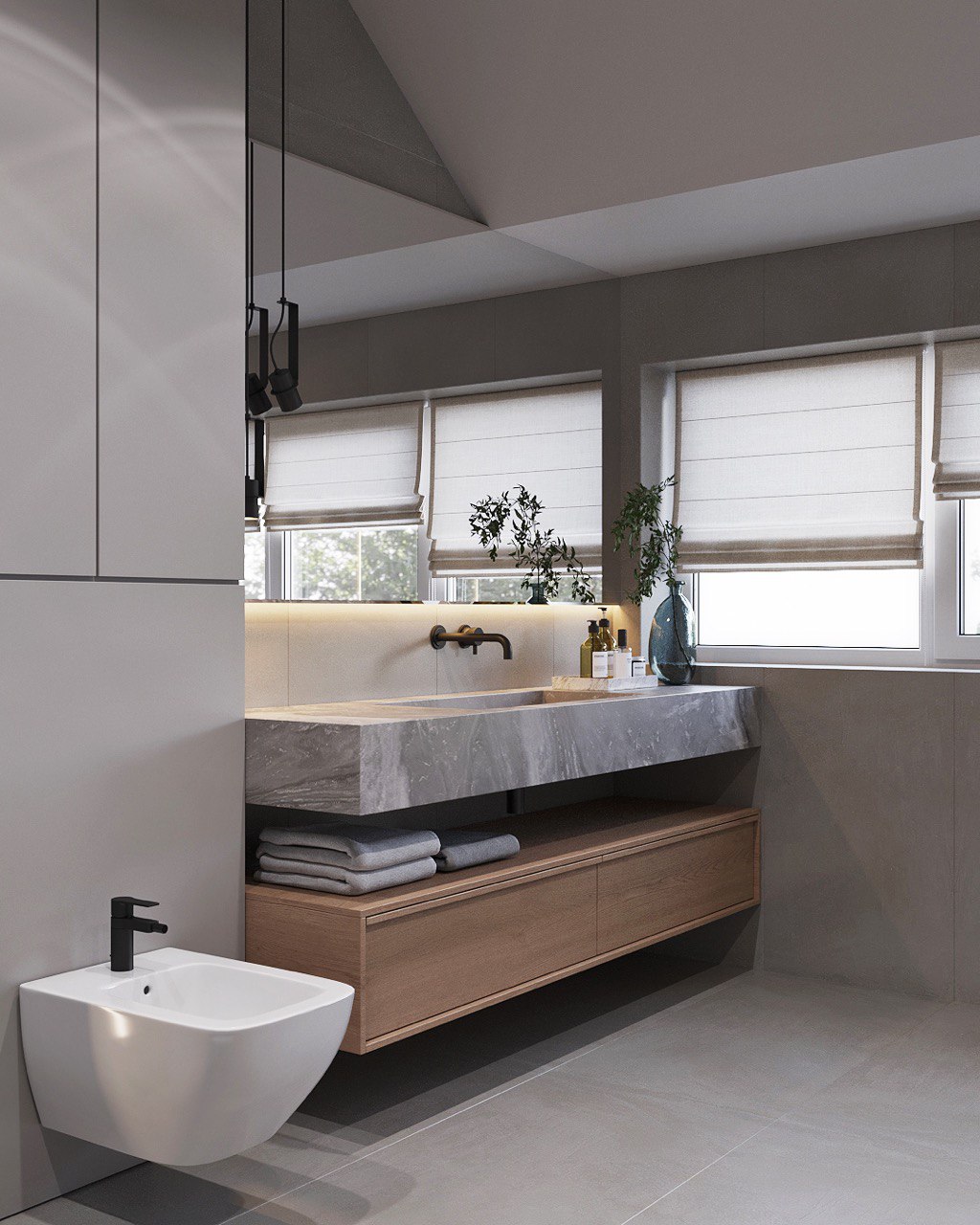 This 180 m² duplex apartment seamlessly blends eco, loft, and minimalist styles. Designed for those who appreciate natural materials, simplicity, and modern aesthetics with an industrial touch.