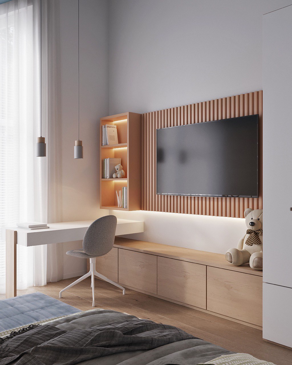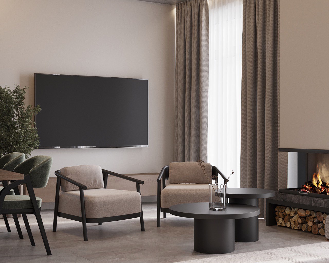Fireplace – A stylish centerpiece in the living room, adding warmth and serving as a focal point of the space.